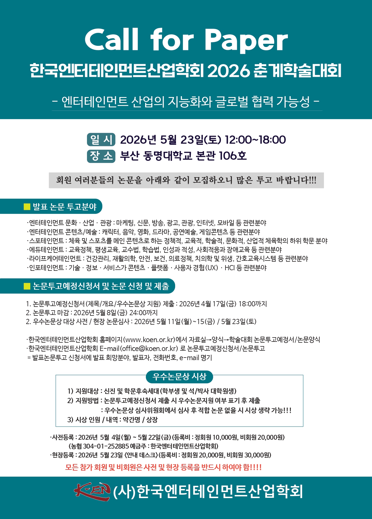 한국엔터테인먼트산업학회 논문지〈제19권 제5호 논문모집〉