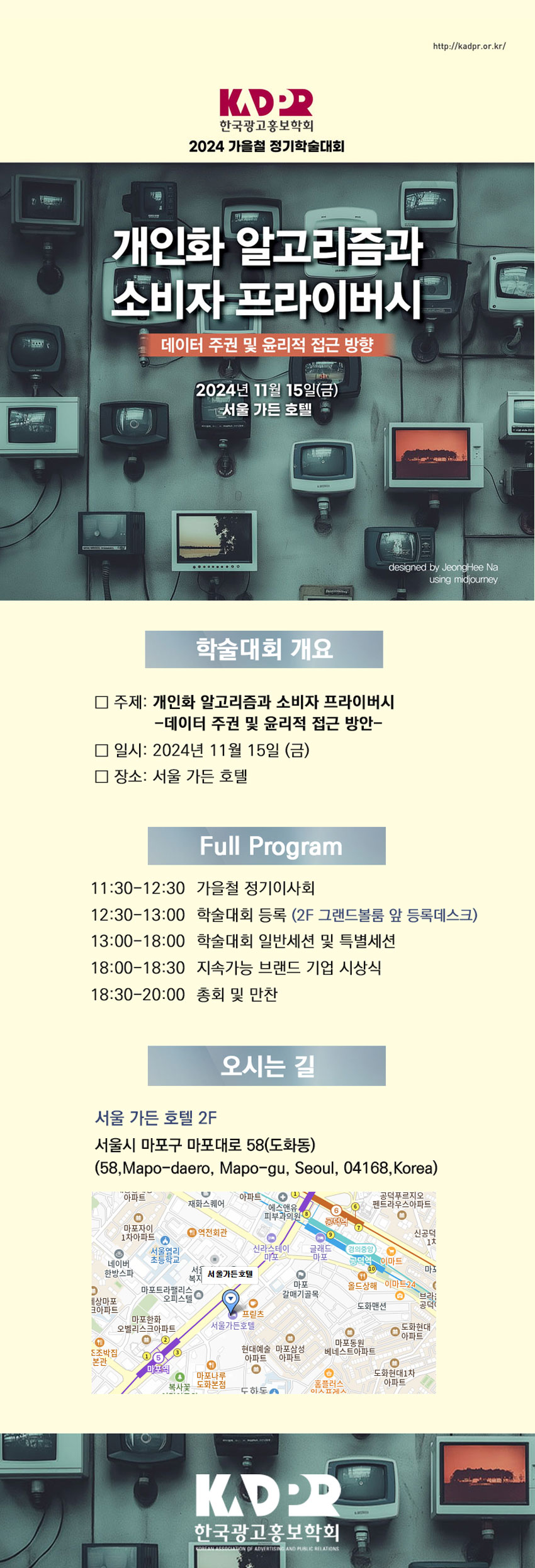2. 한국광고홍보학회에서 2024 가을철 정기학술대회를 다음과 같이 개최합니다. 회원님들의 많은 관심과 참여 바랍니다.