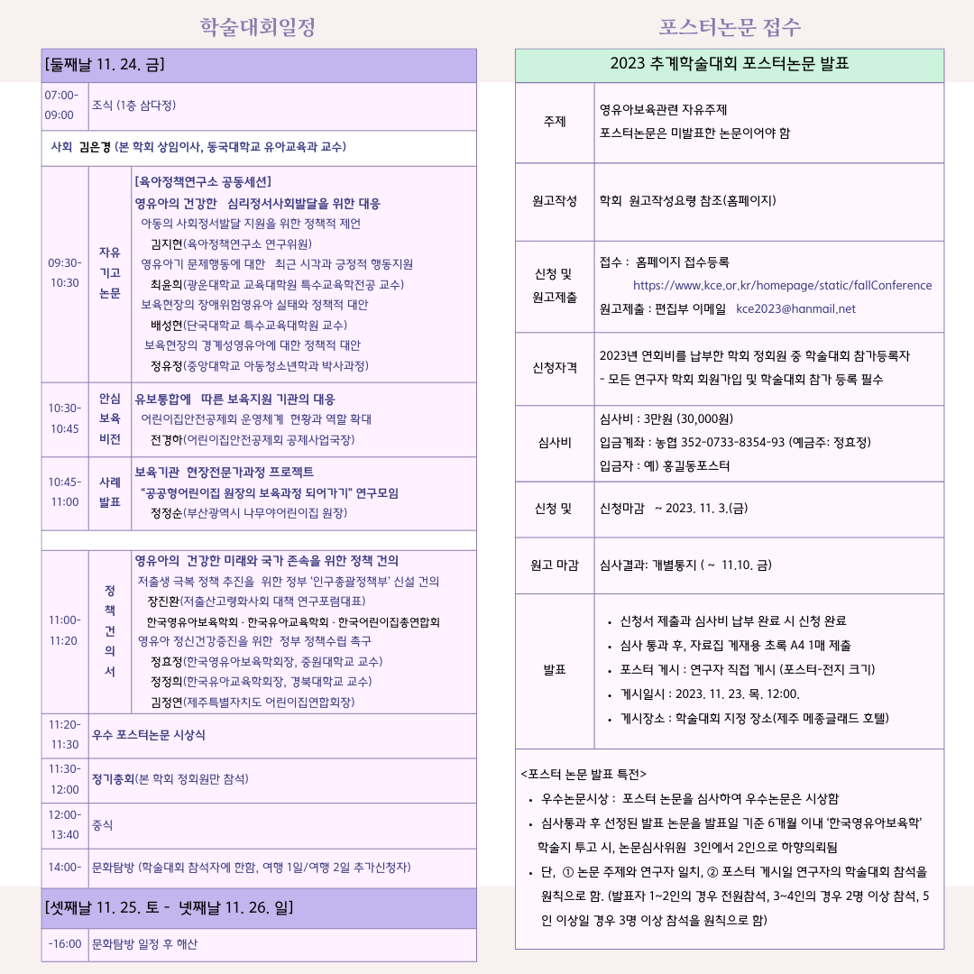 한국영유아보육학회 30주년 기념 2023 추계학술대회_일정 및 포스터논문발표 접수 안내