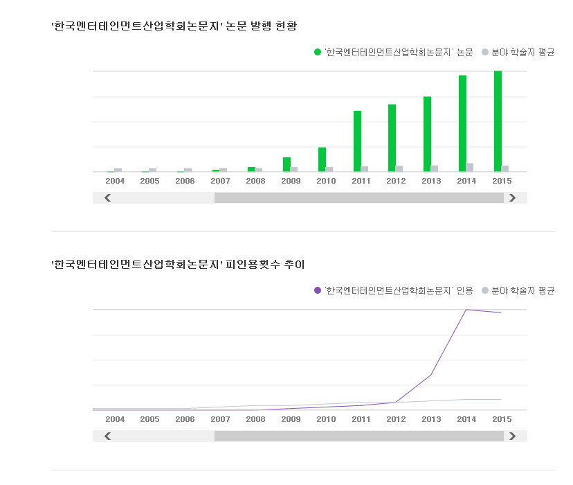 한국엔터테인먼트산업학회논문지 " 논문 발행 현황"