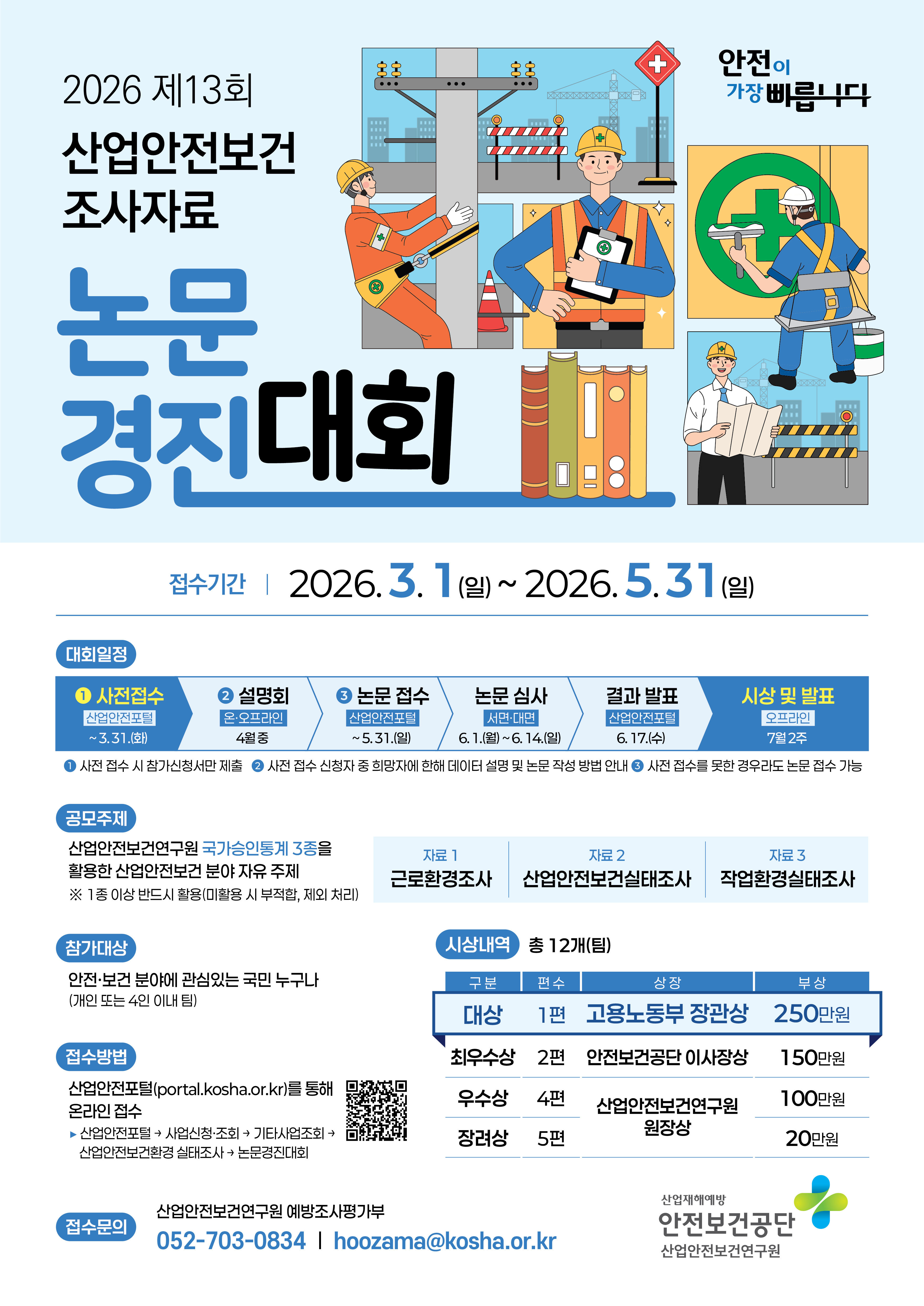 제13회 산업안전보건 조사자료 논문경진대회 안내